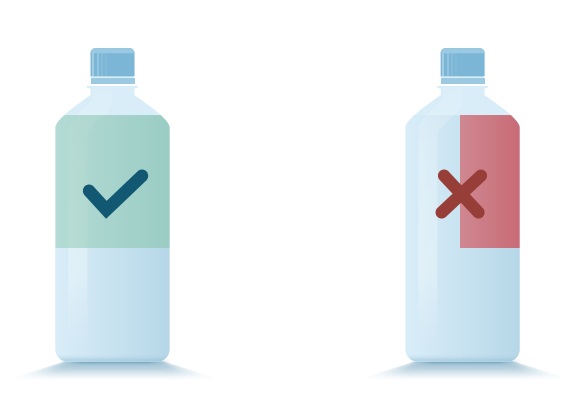 De bedekkingsgraad wordt bepaald aan de kant van de verpakking waar het grootste deel van het etiket zichtbaar is (zie afbeelding).
